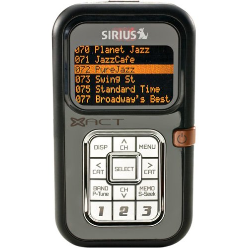 Enjoy SIRIUS Satellite Radio's great programming in your car with Xact's XTR2CK plug-and-play radio package. The XTR2 radio displays all artist, song, and channel information easily on its 6-line readout. And you'll find selecting channels and menu options is a snap with the large, illuminated buttons. The package also includes a car kit, which includes everything you'll need to play the radio in your vehicle: a docking cradle, an antenna, and a DC power adapter. You can save up to 18 channels as presets. The S-Seek feature lets you store up to 10 songs, and will alert you anytime one of them is playing on SIRIUS. A built-in clock gives you several time-based features. The radio has a built-in wireless FM transmitter that "broadcasts" the satellite signal directly to your car stereo over an unused FM frequency — there's no hardwiring required. If your stereo has an input jack, you can connect the XTR2 radio with a patch cable (not included) for the best possible sound quality. For convenience, you can control the tuner with the included wireless remote. If you'd like to use the radio at home, you can purchase a home kit or portable boombox. A subscription to SIRIUS is required.